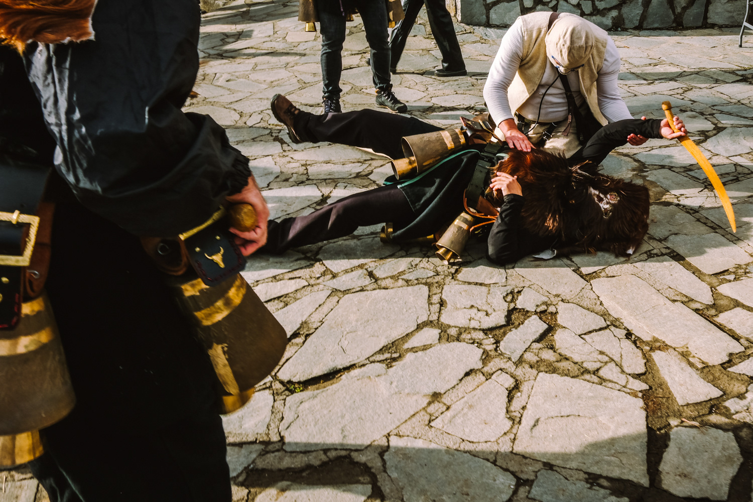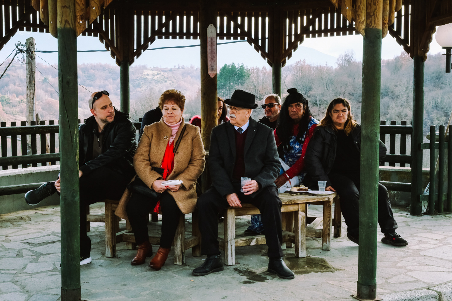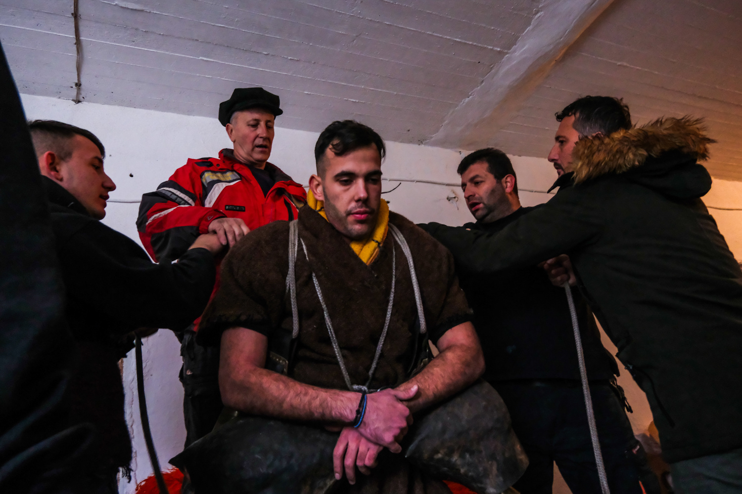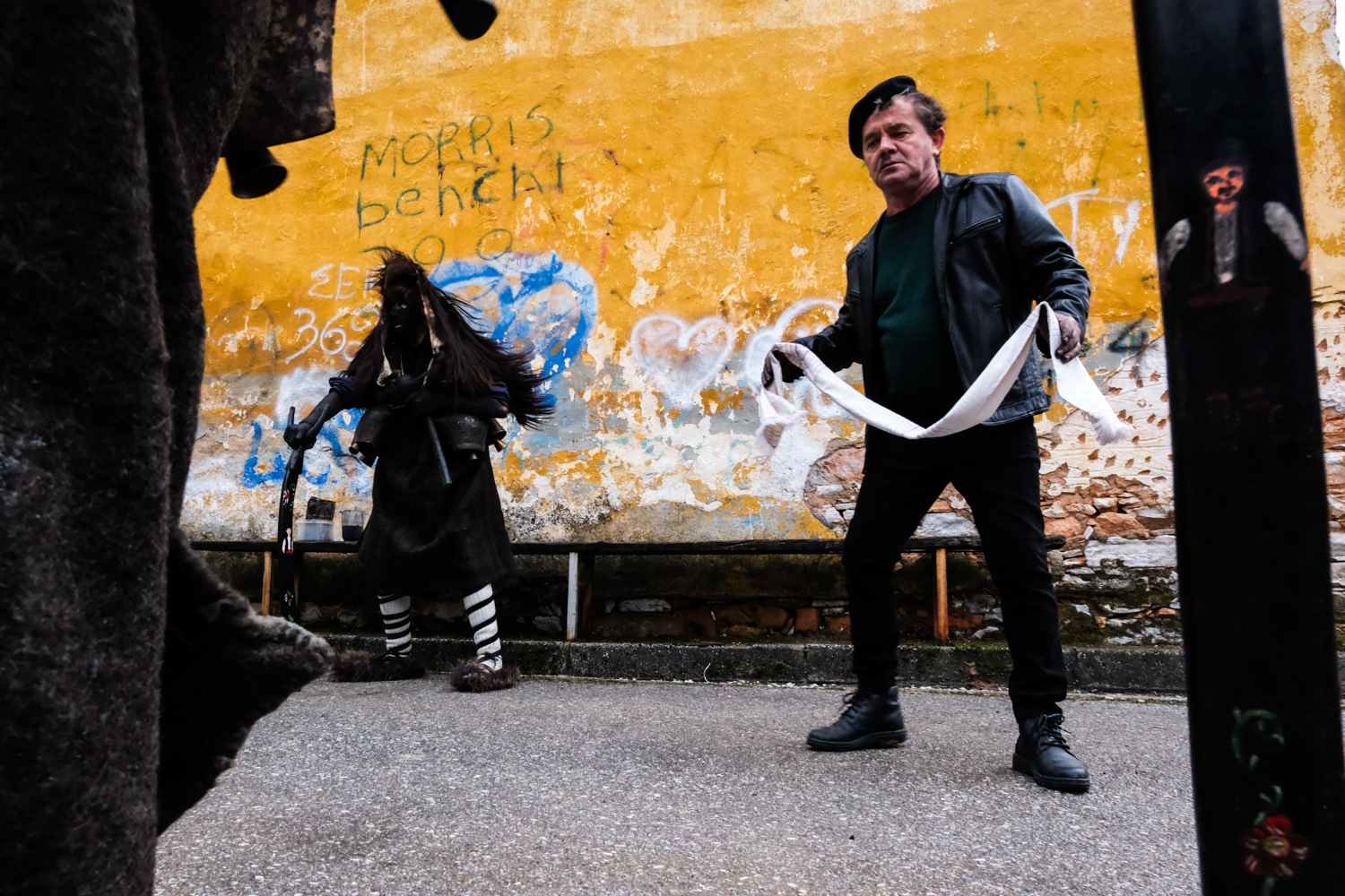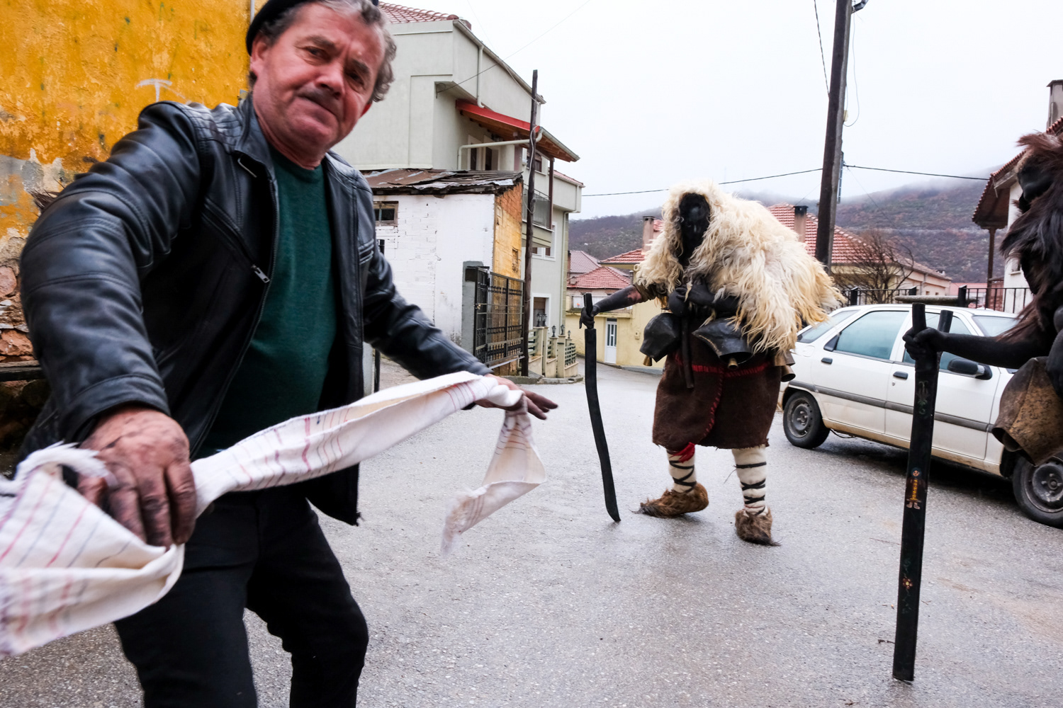 Pagoneri is the most secluded village of all that celebrates the “Arapides” custom. Here the custom kicks off on January 6th and it is called “Harapides”. People wearing scary masks crafted from goat skin, wielding wooden swords, create an atmosphere of excitement. Adding to the spectacle, there are additional characters, including the doctor called “Hatlis” with a pig skin headdress and an outfit which is made of lighter colour fabric, the Bride, portrayed by a man in bridal attire and the Gypsy with her baby. The uniqueness of Pagoneri's celebration lies in the participants portraying sickness or injury, collapsing unexpectedly during the festivities. Hatlis (the doctor), rushes to heal the fallen. Visitors also attempt to playfully "kidnap" the bride or the Gypsy's baby, only to be pursued by the Harapides who are believed to be the bride's brothers.